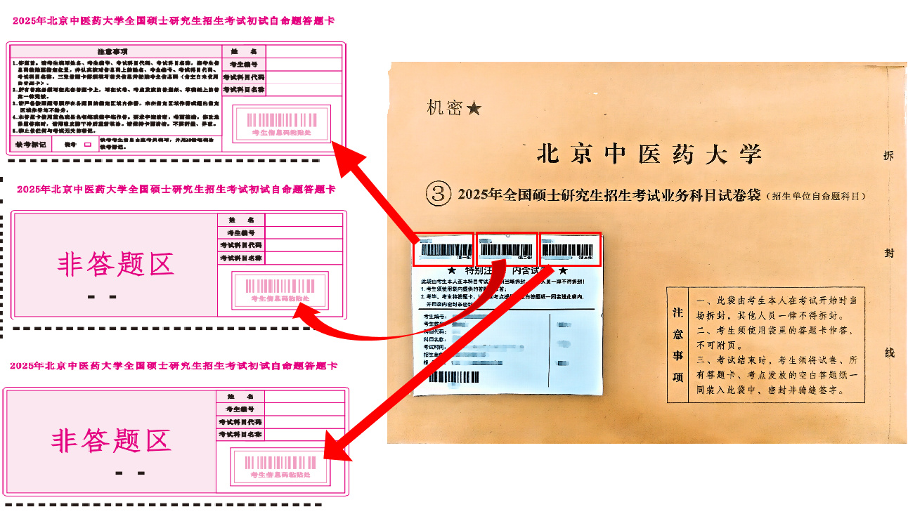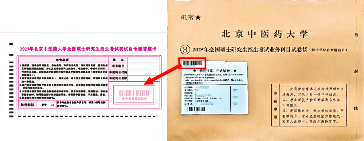 北京中医药大学2025年硕士研究生招生考试自命题科目采用网上评卷方式,考生须在答题纸指定位置粘贴考生信息条形码,为帮助各位考生提前了解条形码粘贴要求,请考生仔细阅读。
