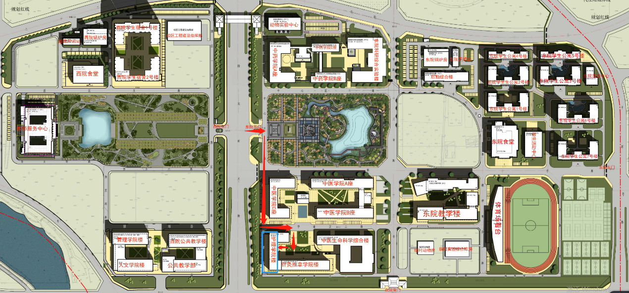 ②【校外考生】需于入校前24小时在北京中医药大学官方微信进行自助预约入校,相关流程会发布在QQ群内,并携带身份证在复试当天于学校东院西门刷身份证入校,具体路线如图: